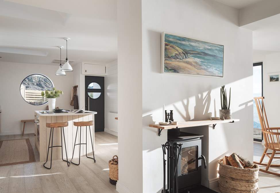 Sun-soaked and perpetually glowing, the open-plan living aspect of Ula invites golden hour light to softly stretch over every corner for an ethereal experience. The cosy living space is simply chic with a double-sided wood burning stove for snug evenings fireside and ocean views set to mesmerise. A kitchen of dreams awaits, with all the culinary amenities you'll need to cook up delicious dishes and a dining space promising endlessly hypnotic views over the rolling tides.