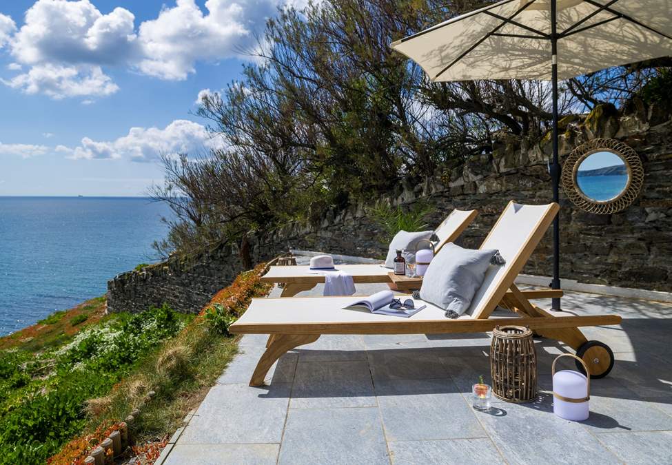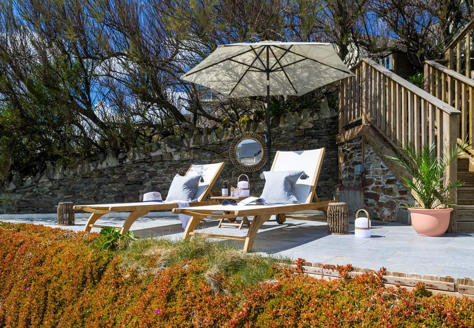 Two sun loungers or lounge chairs plus table & chairs for al fresco dining