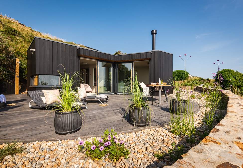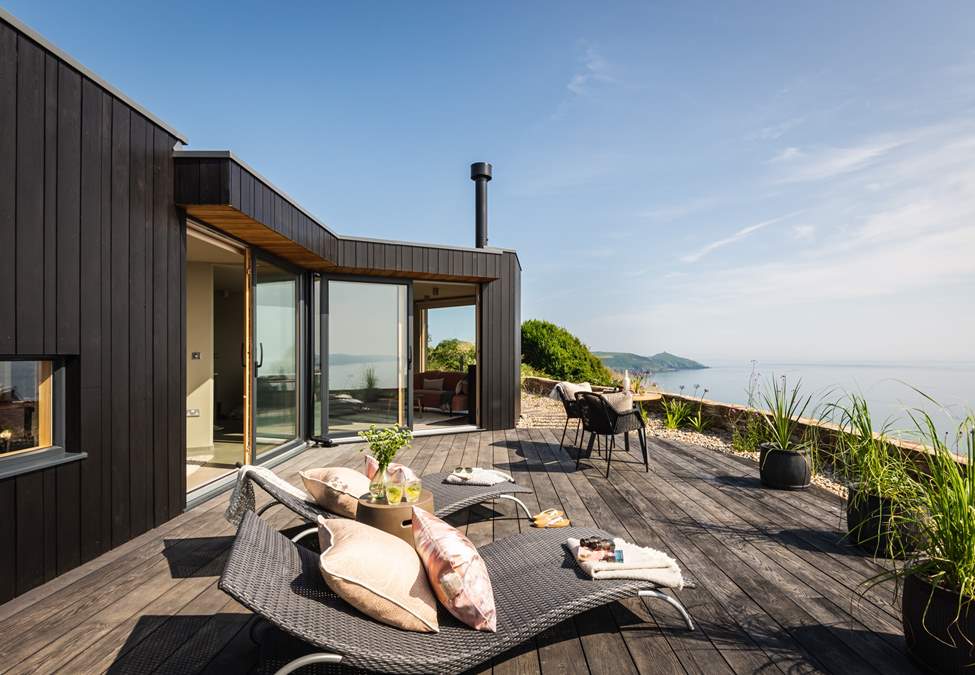 Step inside this heavenly homestay to find gorgeous open-plan living, embraced by its striking, charcoal-black larch clad exterior and floor-to-ceiling glass doors which welcome the outdoors in, making the most of the epic sea views.