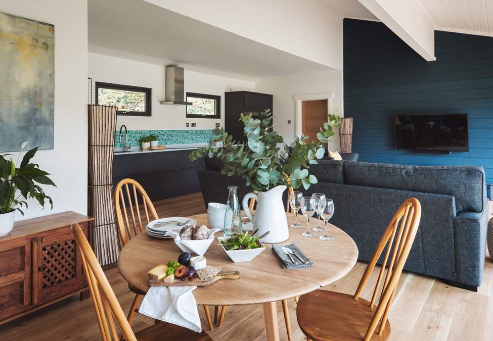 Escaping the everyday has never been quite so spellbinding as our woodland cabin of dreams, The Nest. From its unique and secluded location tucked deep amidst the trees, to the swoon-inducing hot tub set to captivate your very soul. This sleeps 4 Hideaway nestled in a coppice is a tonic for the soul and just made for those seeking an unplugged adventure into the wilds of staycation magic. From heavenly interiors to an open-plan living design, The Nest mirrors the natural landscape to evoke a calm and cosy mood throughout. Reset your body and mind, where UK escapism meets the untamed beauty of nature. Floor-to-ceiling bi-folding doors embrace the open plan living, kitchen and dining space, the perfect balance of indoor and outdoor living by welcoming nature inside. You'll find the kitchen fully equipped with everything you could need to prepare a picnic for two or post-exploring feast. For those cosy nights in, the smart TV promises endless choices for when you need to reconnect with reality - just for a moment at least.