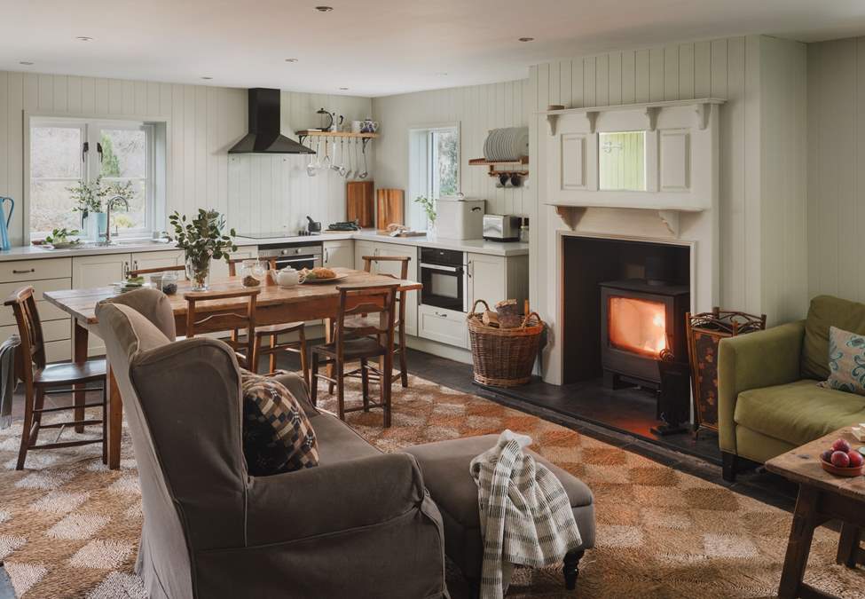 A world of enchantment awaits at Beira's Glen, our luxury hideaway for four nestled in the rural realms of New Abbey in Dumfries and Galloway. A former bothy cottage, uncover endless spaces to relax and unwind, with two living spaces, both boasting wood burning stoves, a social open-plan kitchen and an additional dining space in the cabin-style garden room. With three bedrooms, there's plenty of space for four guests, whether you're travelling with family, friends, as a couple, or for those seeking a solo adventure. You'll find a king size bed in the master, a double bedroom and a third bedroom with twin beds. Soothing soaks await in the romantic bathroom, complete with a bathtub and a separate shower. Earthy tones adorn the walls, with contemporary and traditional furnishings in complementary shades throughout. A paradise for nature lovers, Beira's Glen has the dreamiest enclosed garden, surrounded by trees, flora and fauna. Savour your first coffee of the day perched at the verdant bistro table, soaking up the sound of birdsong as your morning soundtrack. For adrenaline boosting adventures, the mountain glens of Knockendoch and Criffel are within easy reach, whilst for stargazing in Scotland's first Dark Sky Reserve, Galloway Forest is well worth visiting.
