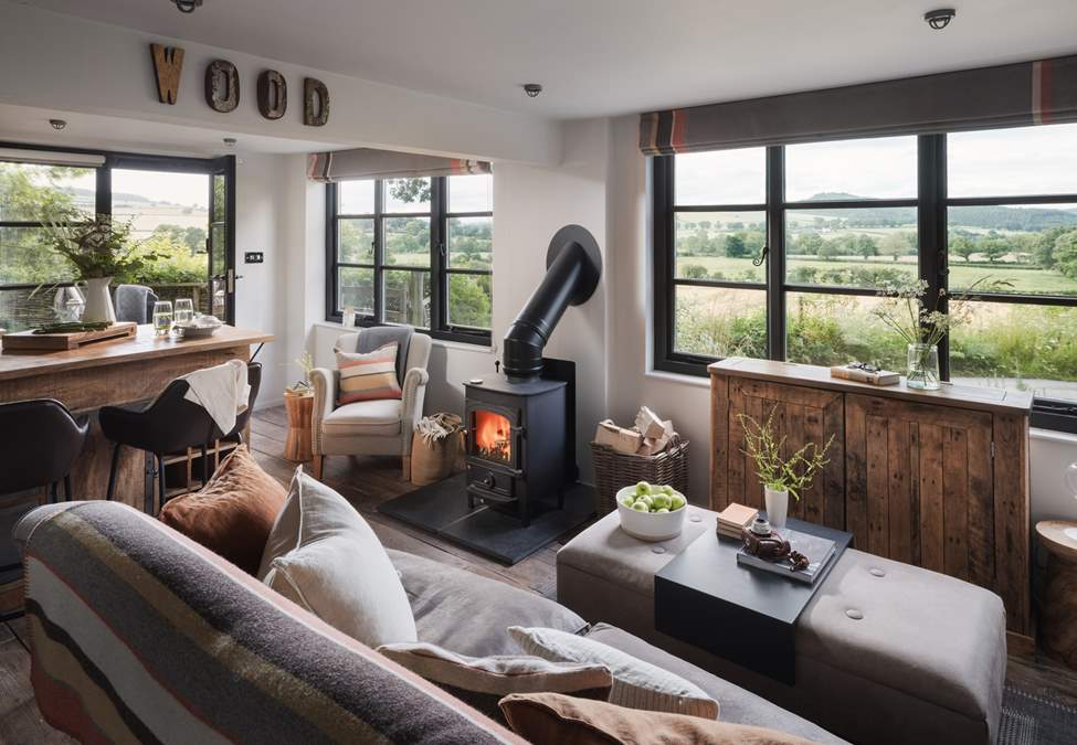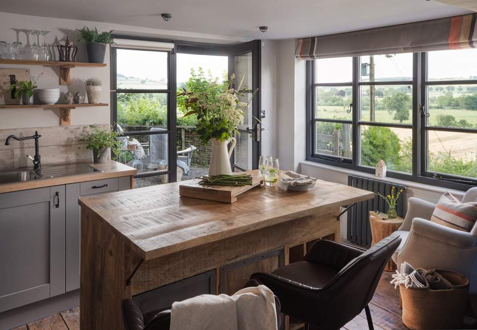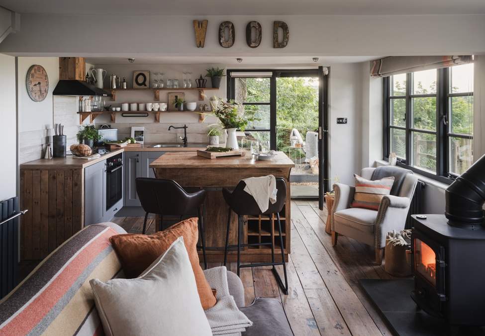 Step inside our woodland haven to find the open plan living space, adorned in rustic touches creating a super cosy sitting room with wood burning stove, a delightfully quirky kitchen design and sweet breakfast bar for dining with your beau. Or perhaps head out into nature for al fresco dining in the wild beauty of Woodlander’s country garden.